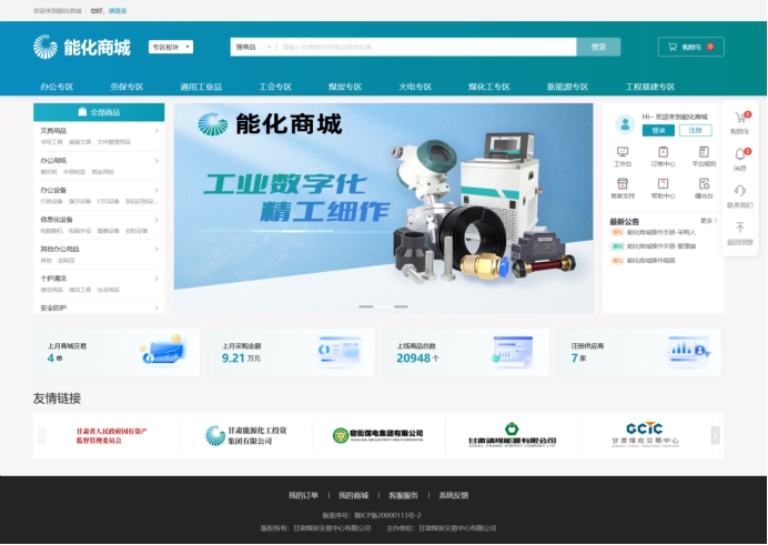 “能化商城”作为集团阳光采购的核心载体,严格践行国家关于国企电商采购的政策要求,通过精准赋码确保商品全生命周期可追溯,并依托比质比价机制实现采购过程透明化、程序规范化,有效落实阳光采购目标。其核心功能聚焦于构建高效、合规的企业级通用物资采购场景,深度整合需求、审批、比价、下单、结算全流程,显著压缩了流程时间并降低了隐性成本,为集团提供了集中、透明、便捷的通用类物资采购解决方案。平台目前开放运营办公、劳保、通用工业品三大通用类专区,上架12大类57小类近2万件商品。